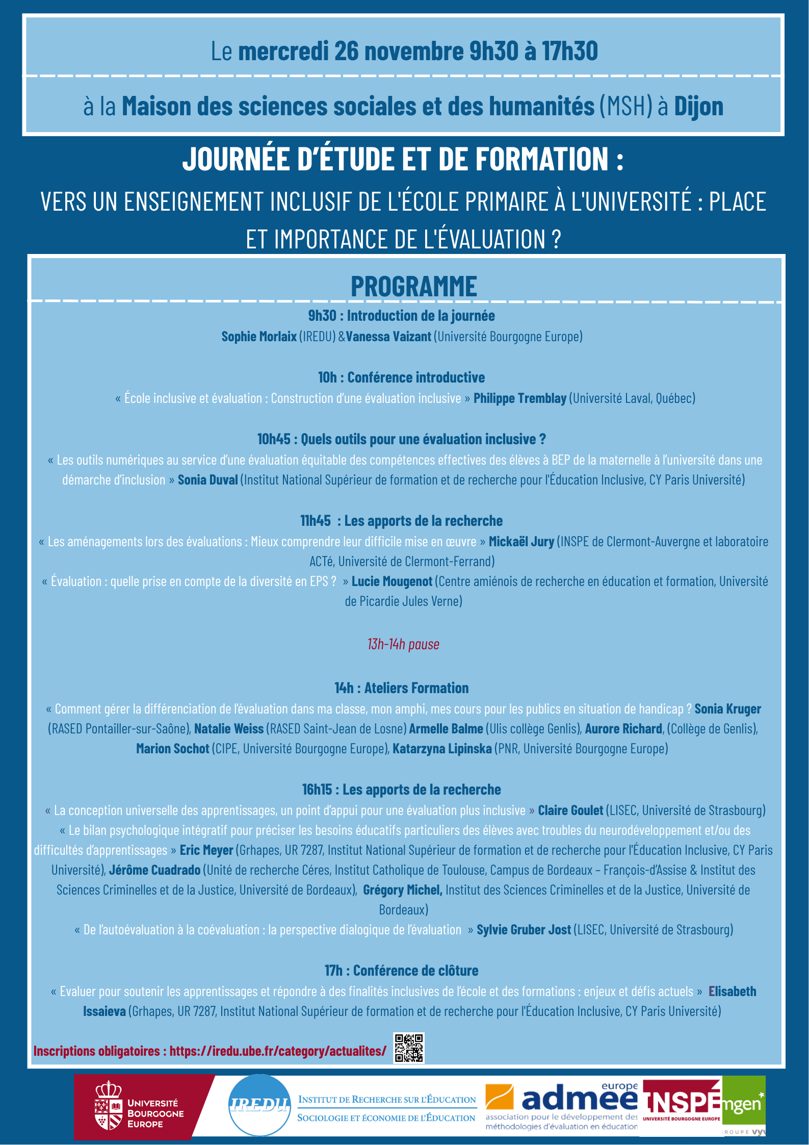 Colloques déjà organisés Journée d’étude et de formation  « Vers un Enseignement Inclusif de l’École primaire à l’Université : place et Importance de l’Évaluation ?
