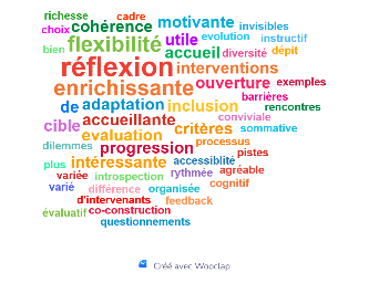 Une image synthétise les cinq mots-clés retenus par les participant·es pour dresser le bilan de cette journée.