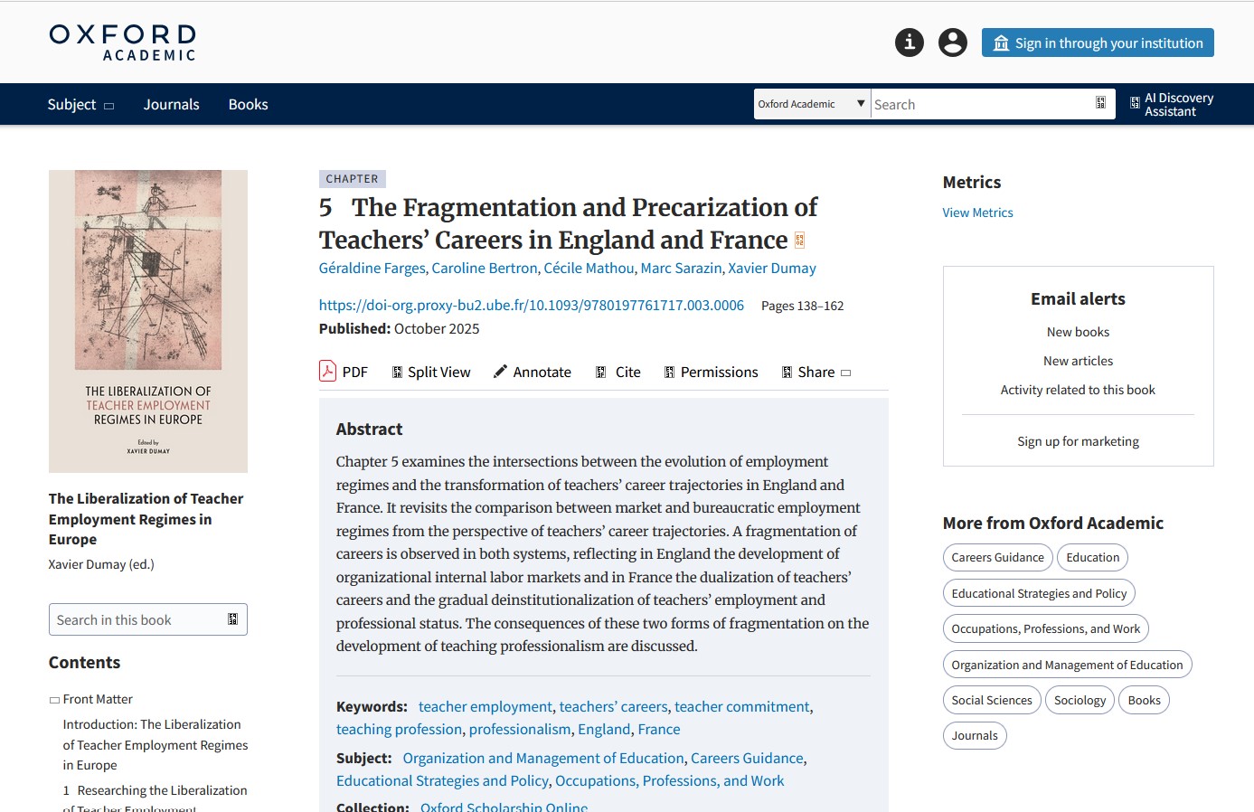 Documents mis en ligne The Fragmentation and Precarization of Teachers’ Careers in England and France